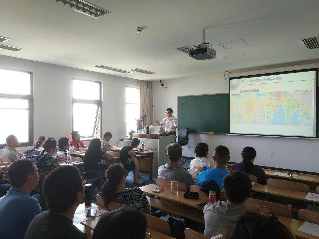 申教授在近一个半小时的时间里,由浅入深,从“一带一路”的概念、提出的时代背景、主要内容、“一带一路”倡议的战略意义、存在的风险于挑战等五个方面,全面而深入的解读我国“一带一路”倡议,并围绕“一带一路”倡议相关的问题提出了自己的思考与观点。讲座结束后,党员同志们结合自身的专业研究和申教授进行互动,申教授针对提问也发表了自己的看法。