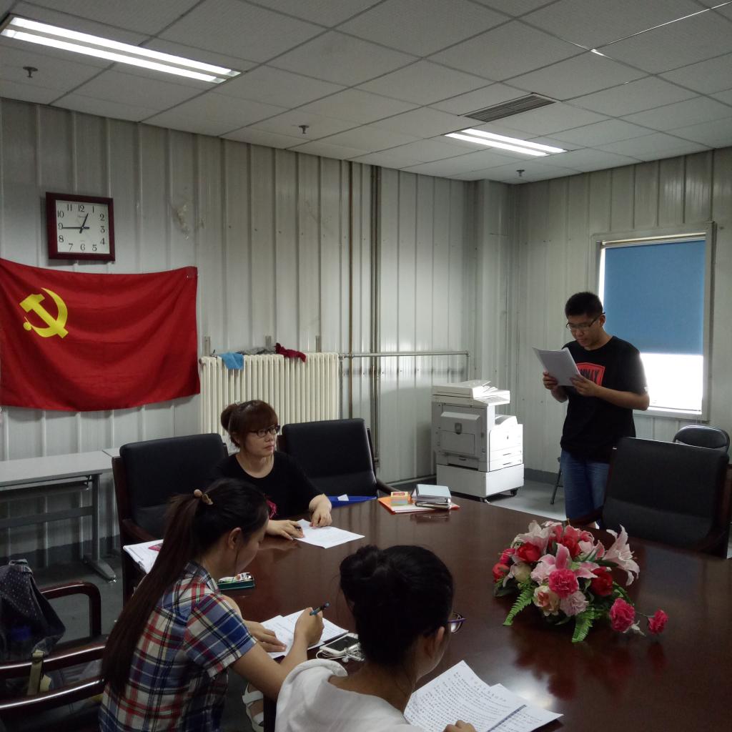 2016年7月8日中午,公司本科生第二党支部于沙河校区体育馆二楼会议室内召开党员发展大会暨庆祝建党95周年党章书法大赛表彰会。会议由支部书记李秋月主持,她首先宣布了到会情况符合开会要求,随后全体支部成员听取并讨论了接收姜昊男同志为预备党员的情况,最后对支部开展的庆祝建党95周年党章书法大赛的作品进行总结颁奖。