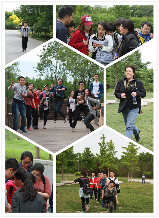 3时整,活动正式开始。整个活动期间,团队成员必须相互帮助,互相照顾,齐心协力完成分散在公园各个景点的八个小项目,其中包括“交通堵塞”、“钉子游戏”、“老虎过河”、“听风者”、拍照等,才能决定最后的胜利。在各活动项目中,大家头脑风暴、集思广益。比如在“交通堵塞”和“老虎过河”的游戏中,同学们把数理统计课本中学到的知识得到了很好的利用。而在“钉子游戏”中,各团队成员又学会了创新思维的培养。“听风者”更多的是考验团队成员间的密切配合及时间与效率的合理协调。随着一个又一个问题的解开,各小组距离终点也越来越近。5时整,所有团队均抵达终点,在宣布各队时间,名次之后,林琼老师为各团队成员颁奖,并合影留念。在一片欢声笑语中,本次活动圆满成功。