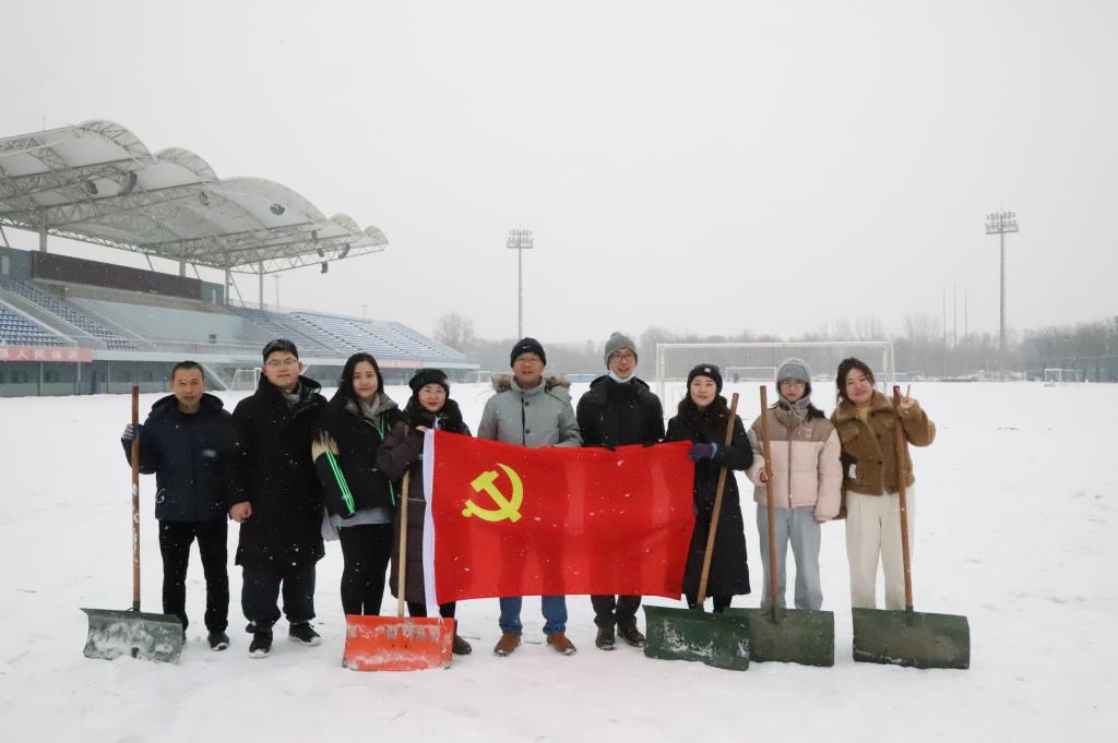 一场大雪,美了校园,也盖了前路,为了校园安全出行,公司行政教工党支部向行政教工们发出了“扫雪除冰,温暖同行”的号召,2023年12月14日,组织行政教工党员、党外人士、群众一起参与校园扫雪除冰活动。