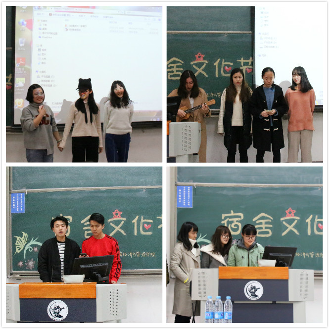 公司员工会生活部在宿舍文化节活动期间定期安排工作人员进行宿舍卫生安全检查,并将检查结果算术平均作为优秀宿舍考核指标得分之一。展示活动当日,各个员工宿舍从“宿舍PPT介绍”、“宿舍视频展示”和“现场才艺表演”三个部分对宿舍建设成果进行展示。公司党总支书记林琼老师,2017级1班班主任陈琦文老师,员工工作办公室李秋月老师、张振磊老师、胡庆老师,员工会主席团陈逸洲同学、杨莹昱同学,2017级班级工作助理马枢佳同学、曾伟同学等应邀作为评委出席。