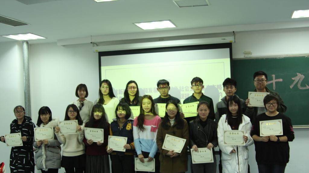 五个小组按序发言完毕,知识竞赛进入最紧张的投票环节。获得第三名的是第一组(郭晓艺、余文洁等),第二名获得者是第二组(刘子轩、蔡昭伍等),第一名则由第五组(徐琛、马枢佳等)获得。公司员工会主席刘嘉琪同学、员工会副主席杨莹昱同学、团委副书记张萍同学为三个优胜小组颁发奖状。