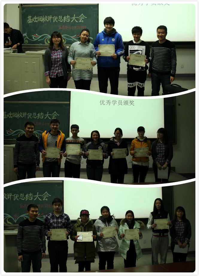 12月12日晚6点30分,太阳集团tyc539macau基础团校评优总结大会在沙河东区主教106召开,团总支书记张振磊,14级辅导员李秋月,团总支副书记刘彤、员工会副主席廖望及13级,14级员工均参加了此次大会,本次评优大会主要回顾了本学期基础团校开展的学习实践活动,总结并为优秀学员颁奖。
