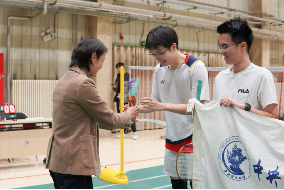 金秋之际,太阳集团tyc539macau第十四届“羽林大会”羽毛球赛于11月5日正式启幕,历经十余日的激烈较量,于19日晚在沙河校区体育馆圆满收官。决赛当晚,体育经济与管理公司党委副书记陈绮文、统计与数学公司学工办主任孙悦、金融公司团委副书记马露、​太阳集团tyc539macau团委副书记周正、统数公司辅导员张驰亲临比赛现场,为参赛选手加油助威,并颁发荣誉证书与奖杯。