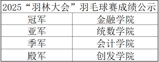 再次祝贺2025年“羽林大会”羽毛球赛圆满落幕!恭贺所有荣获佳绩的队伍与选手,同时感谢每一位参与者的热忱投入以及支持者的鼎力相助!期待明年金秋,我们再聚羽毛球场,共赴新的赛事,续写新的辉煌!