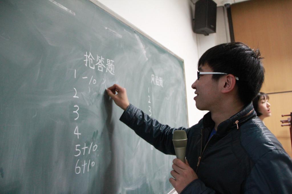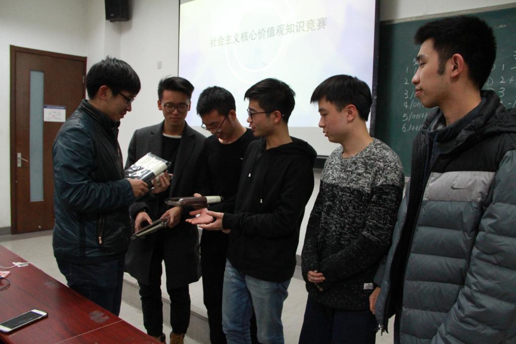 在第一个环节中,由7道单项选择和3道判断题组成的必答题环节考验的是大家对社会主义核心价值观的基本的掌握,在此环节中各个小组基本都给出了正确选项。在第二个抢答环节把此次活动的气氛推向了高潮,比赛设置的趣味性带动了在场所有同学的积极性,大家都参与到比赛中在小组内进行热烈讨论。当主持人说完:“抢答开始”之后同学们都争先恐后的起立回答问题。发生在抢答题环节的小插曲,由于大家太积极的回应,参与抢答人数太多,裁判无法靠眼睛分辨出哪名同学最先起立获得回答资格,因此采取看手机录像回放来进行判断。