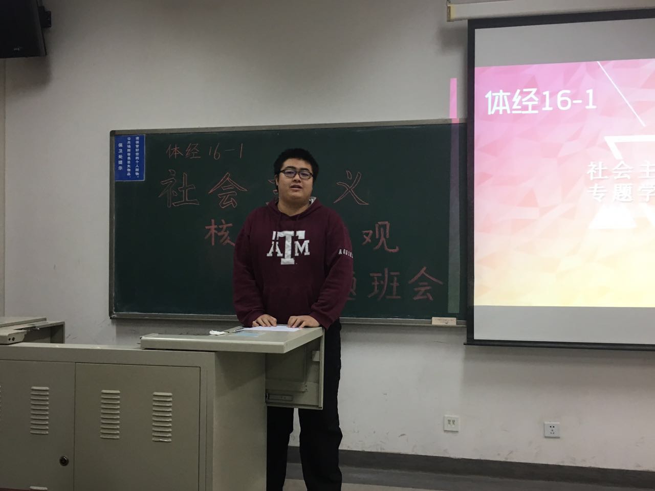 接着,2016级班级助理陈逸洲学长以质朴的话语现场与在座的同学们交流了他所理解的社会主义核心价值观在日常生活中的体现与意义。2016级本科生辅导员胡庆老师详细地向同学们阐述了她对于社会主义核心价值观上的解读与理解,深刻明晰地解释了“为什么现代老员工需要学习社会主义核心价值观?”以及“现代老员工如何在日常的学习生活中实践社会主义核心价值观?”这两个现代老员工经常提出的问题。胡庆老师的心得与思考令同学们对社会主义核心价值观的认识与感悟迈上了一个新的高度。随后,员工会团支书张文雨同学、黎随同学以及李凌晨同学分别上台讲述了在社会主义核心价值观学习活动中他们的心得体会。