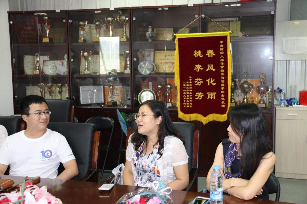 “管他十年混如何,君卿归来仍少年”。下午4点,毕业十周年师生座谈会顺利召开。员工们向当年一样面对亲爱的老师们一一汇报了自己毕业十年来的工作、生活情况,表达了对母校和老师培养之恩的感谢,发言之间彼此相互调侃表达了对昔日同窗情、舍友情的怀念。出席座谈会的体育经济2003级班主任李毳老师,任课教师姜春华、张自如、闵捷、李永红、李坤等老师亲切寄语,表达对员工们的关怀和祝福。座谈会最后,员工代表向公司赠送印有“春风化雨,桃李芬芳”的锦旗和刻有“梅兰竹菊”的屏风,并依次向出席座谈会的老师们赠送鲜花,再拜师恩。