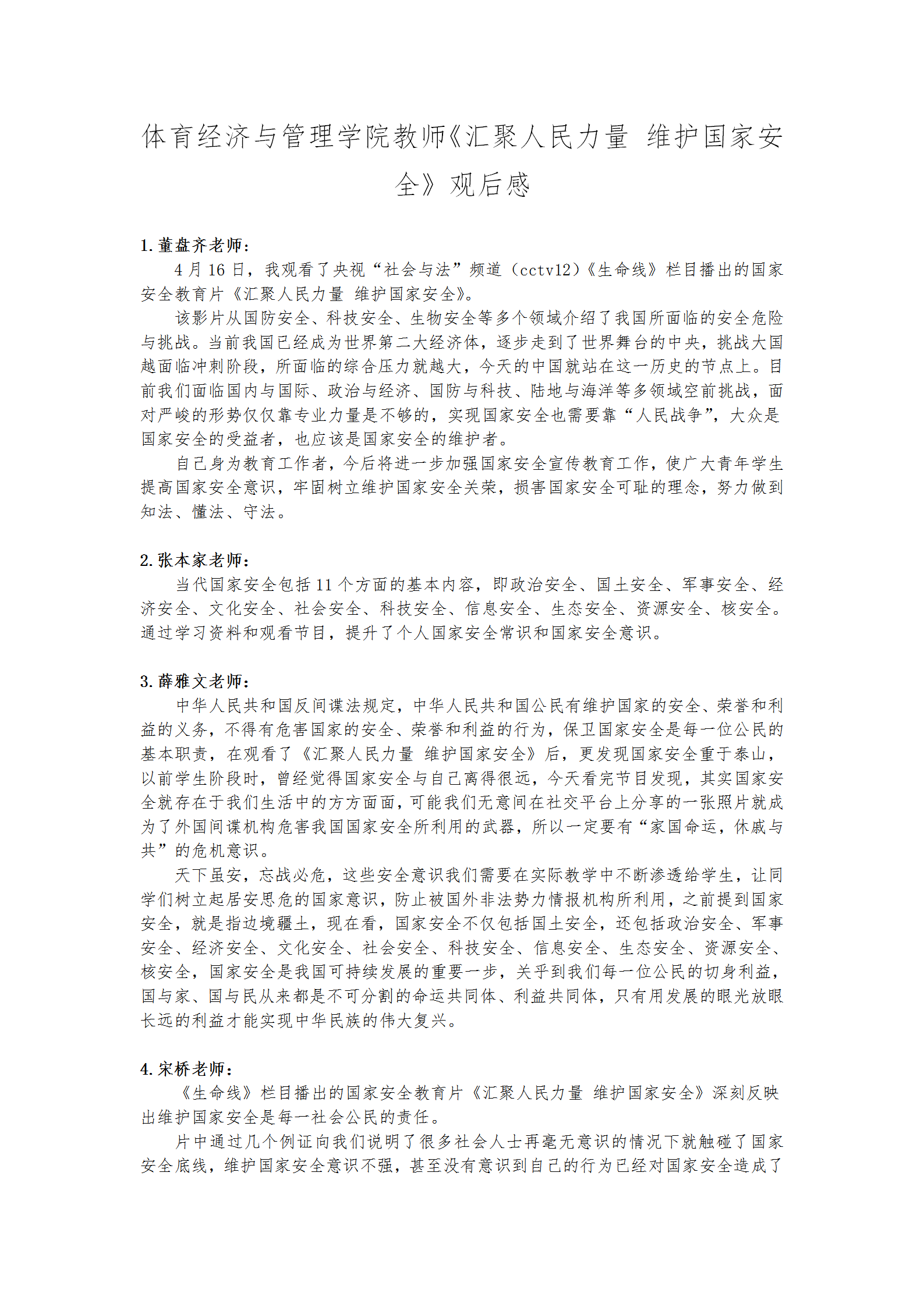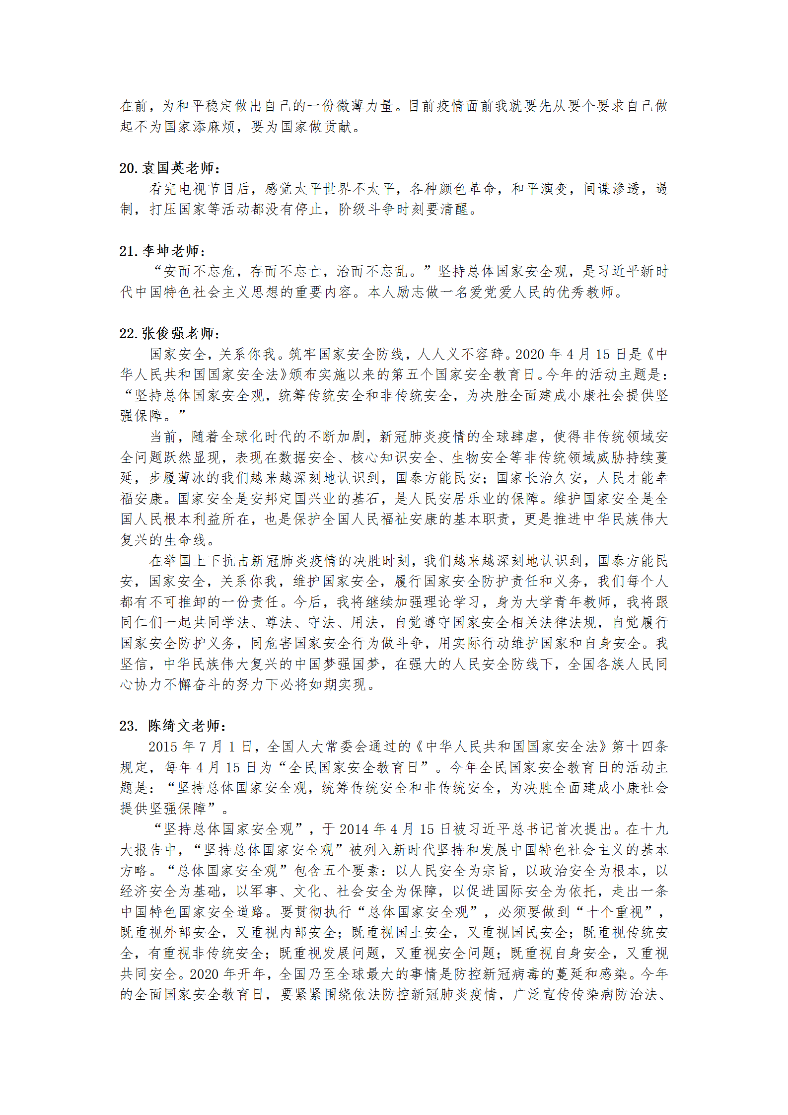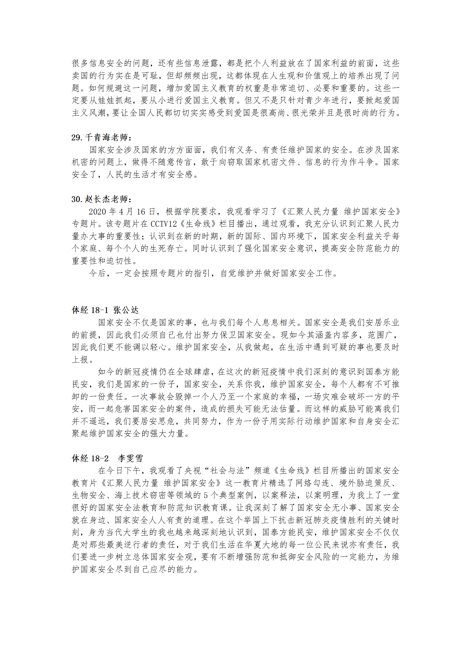 2020年4月16日,公司积极响应号召,组织师生观看央视“社会与法”频道(cctv12)《生命线》栏目播出的国家安全教育片《汇聚人民力量 维护国家安全》,并撰写观后感,不断强化师生的国家安全责任观。