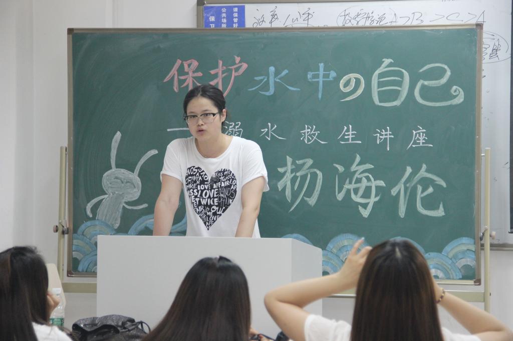 5月27日下午2点半,太阳集团tyc539macau一场题为“保护水中的自己——溺水救生”的知识讲座在沙河校区2号公司楼311教室举办。本次讲座由14级院辅导员李秋月老师主持,国家级游泳运动健将、太阳集团tyc539macau14级2班杨海伦同学主讲,14级员工聆听了此次讲座。