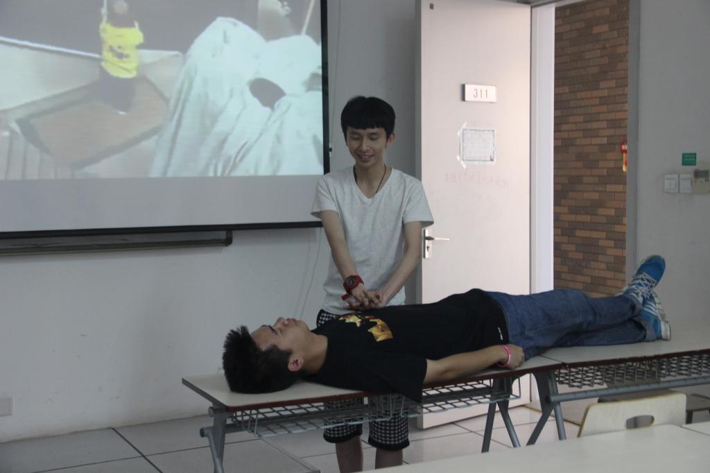 在接下来的问答环节,杨海伦耐心的就同学们的问题进行了细致解答,并用提问和“模拟救生”实践的方式帮同学们再次复习了心肺复苏的步骤,加深了同学们对这项技能的印象。