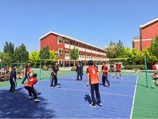 接下来,中财的排球队员们来到了青铜峡市第六小学的体育场为同学们呈现了一场排球表演赛。在表演赛中球员们的精彩串联让人目不暇接,一记记全力起跳的扣杀引得员工们一阵阵欢呼,防守与救球也让观众们直呼过瘾。队员们与员工们积极互动,加油声此起彼伏,员工们的热情如同这似火骄阳一般高涨。这场激烈的表演赛不但传播了排球的乐趣,更展示了体育运动的魅力。