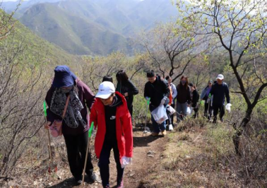 在长城保护员的带领下,大家踏上了北齐长城,开展“长城捡垃圾”公益活动。蜿蜒的长城上,老师们手持垃圾袋,认真清理着每一处角落的垃圾,以实际行动践行环保理念,守护这份珍贵的文化遗产。